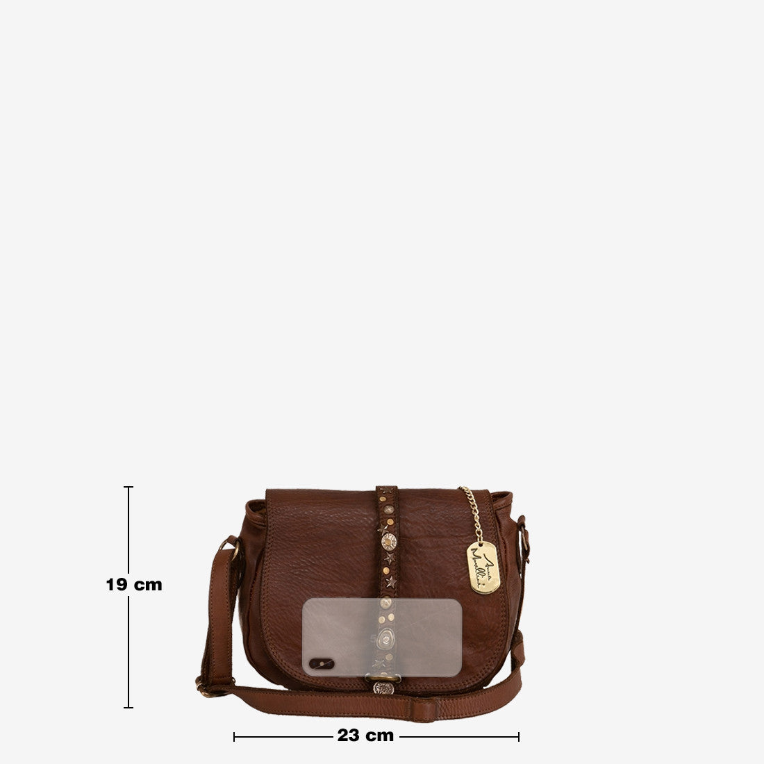 - Handles: Crossbody bag with leather flap with magnetic button