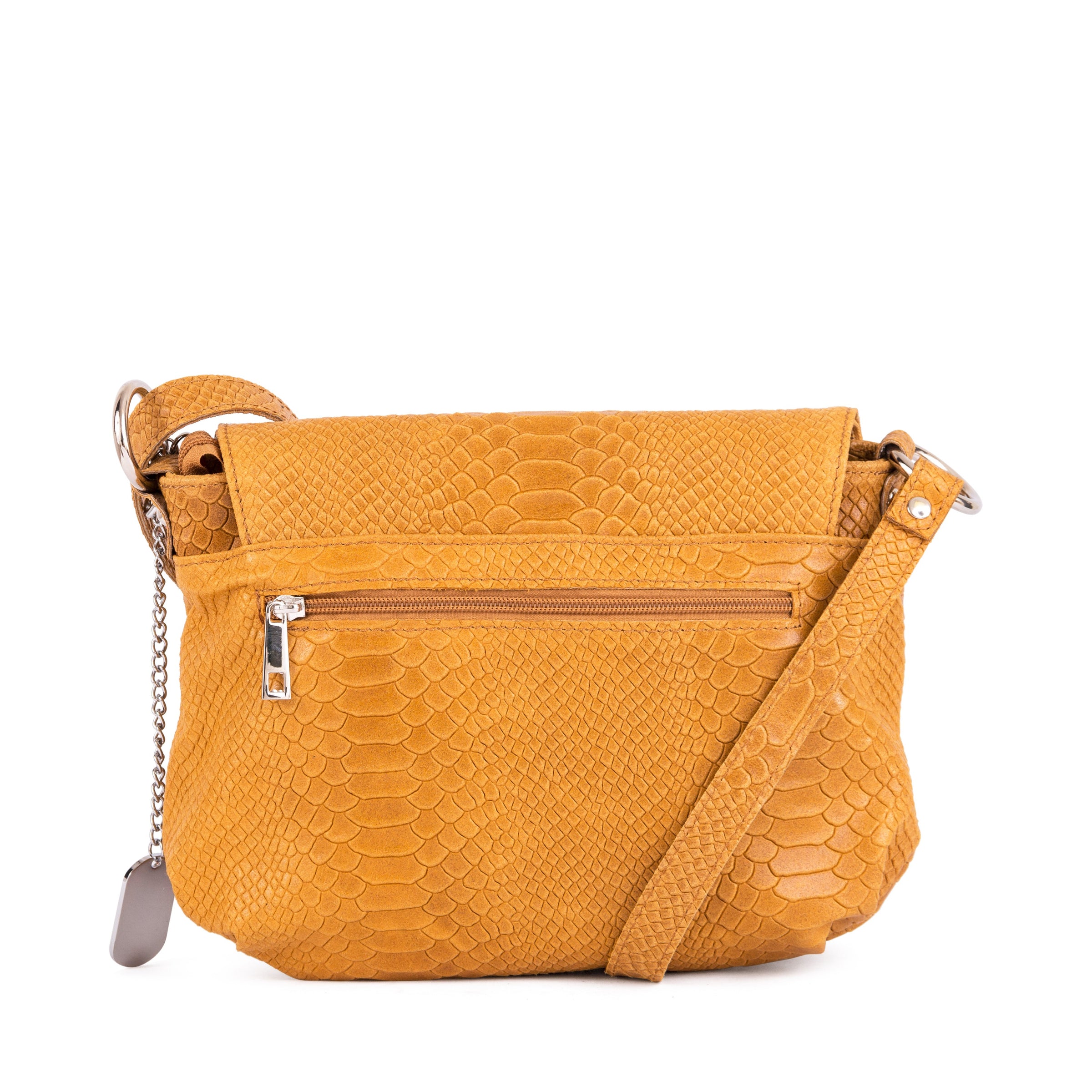 • INTERIOR: Two interior compartments with top zip closure, flap in leather